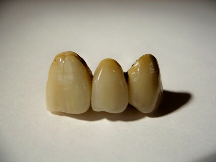 Металлокерамика – самый популярный вид несъемного протезирования. На металлический каркас на основе никель хромового или кобальт хромового сплава послойно наносится керамическая масса, а затем производится ее обжиг. Техник воссоздает из фарфоровой массы натуральную анатомическую форму с буграми и фиссурами, максимально подобранную под цвет зубов пациента. ![]() ![]() Во время протезирования пациенту изготавливаются временные коронки, за счет которых пациент может смело жевать и улыбаться. статья «Металлокерамика» добавлена 2008-11-15 года